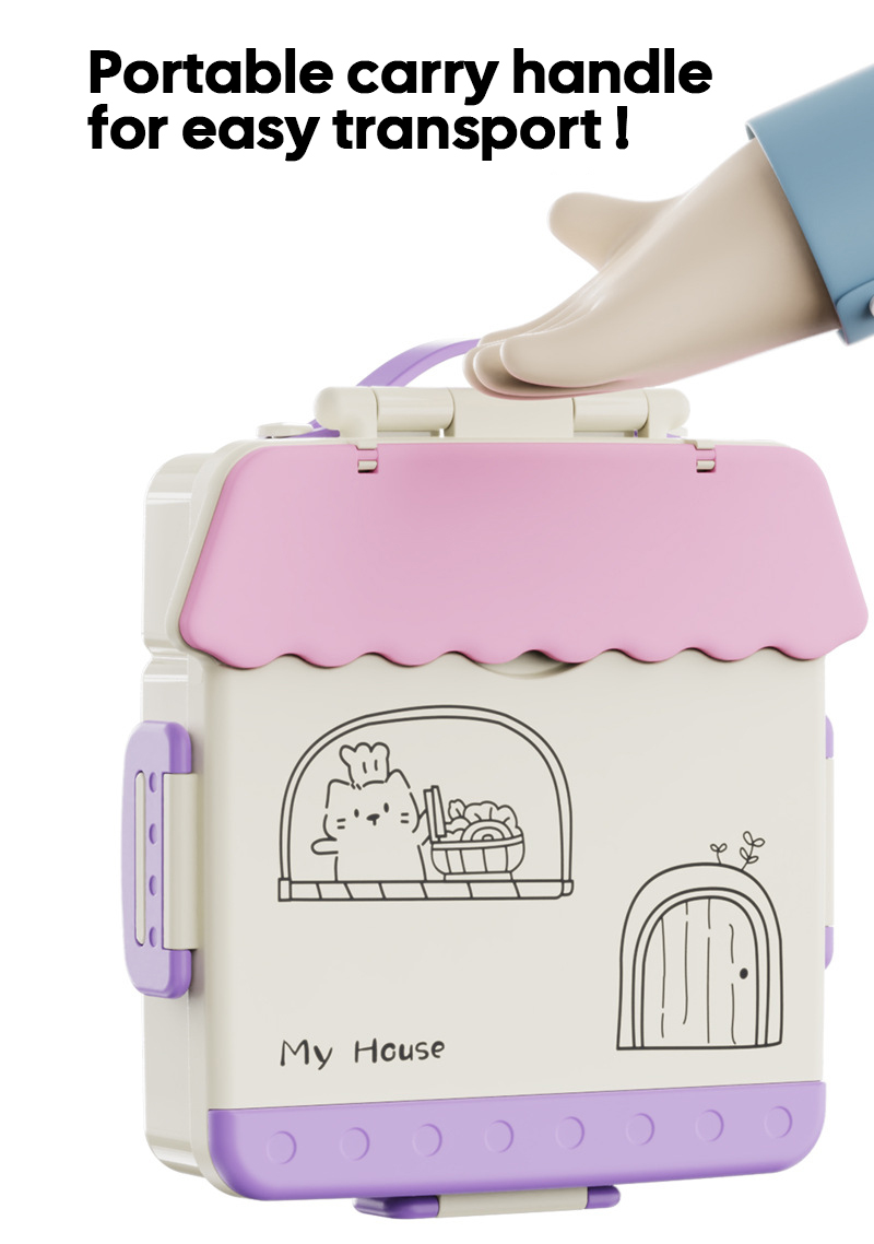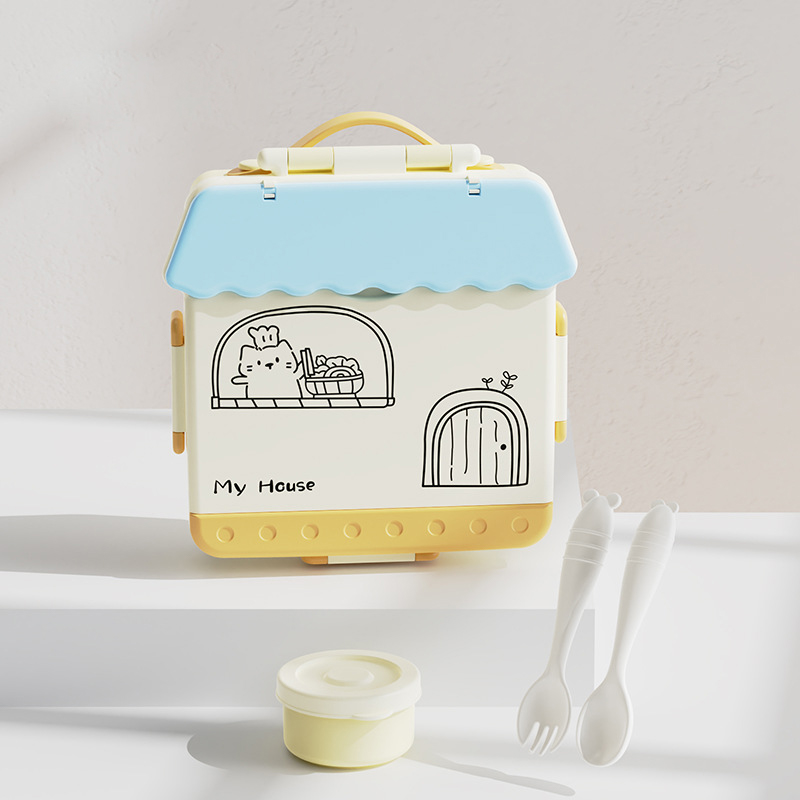 Kids’ Bento Lunch Box, Leak-Proof, Compartmentalised, with Fork & Spoon