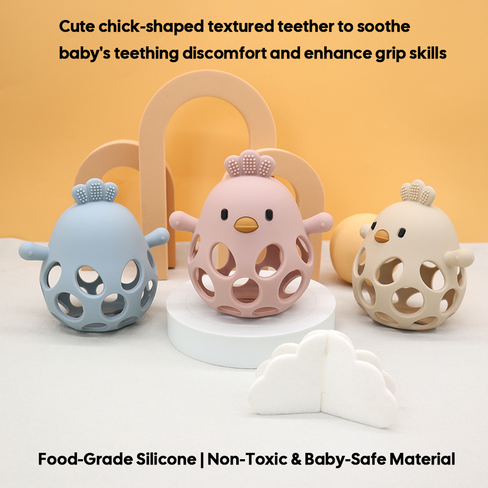 This adorable chick shaped teether is designed to help soothe sore gums while encouraging your baby’s grip and sensory development. Made from soft, food-grade silicone, it’s safe for chewing, fun to play with, and easy to clean, a perfect companion for every teething stage. Whether at home or on the go, this lightweight and cheerful teether keeps little ones comforted and entertained.