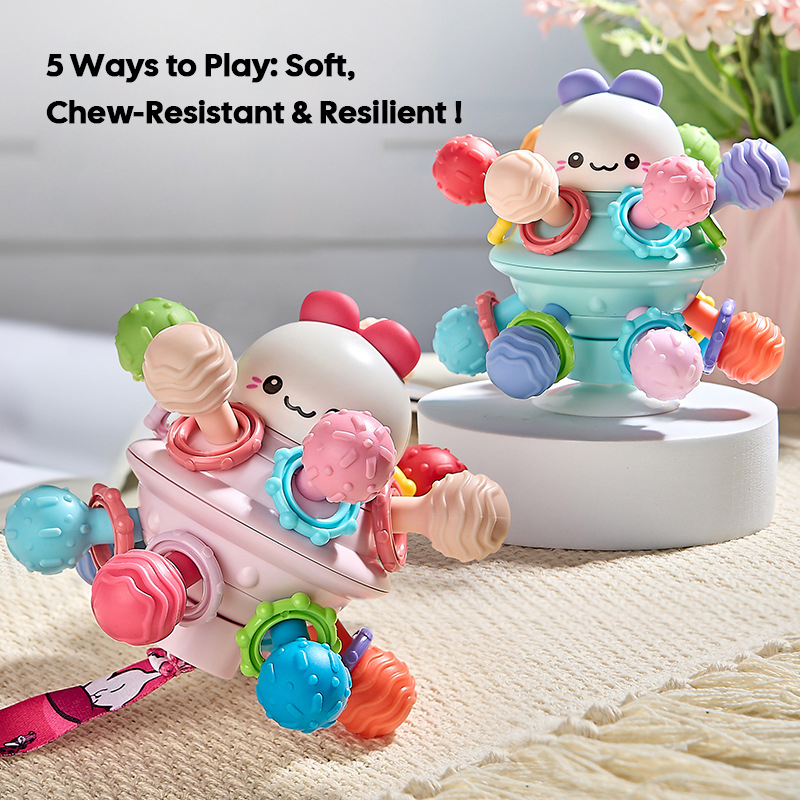 This colorful teether rattle is designed to help babies through teething while supporting early sensory development. It’s made with soft, baby-safe materials and features various textures and colours that are fun to touch, play, look at, and chew. Perfect for babies learning to explore the world with their hands and mouth. Lightweight and easy to hold, a playful companion for growing little hands.